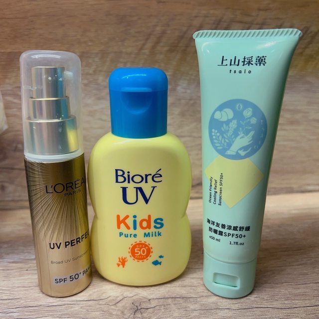 中間的KID防曬是拿來擦身體,實在不喜歡擦身體的防曬太黏