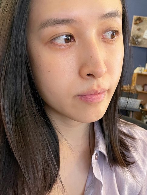 直到感覺保養品完全吸收,臉上呈現有光澤但完全不粘膩後就OK。