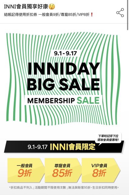 折扣分9折(一般會員)/85折(尊寵)/8折(VIP)