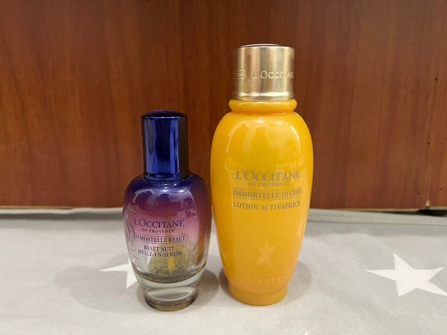 右邊是蠟菊化妝水,質地很水,擦上臉有滋潤感又不會黏膩