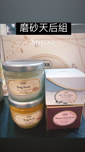 兩顆大顆的身體磨砂膏($2080)+頭皮磨砂膏($1880)+臉部磨砂膏($1680)