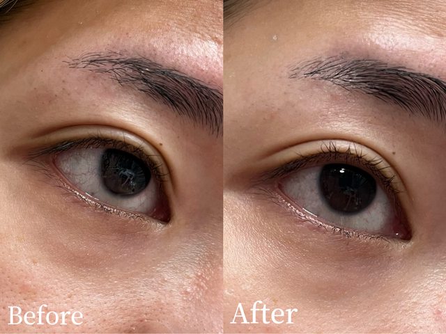原本自己的眼下有清晰可見的細紋(混在下睫毛裡),