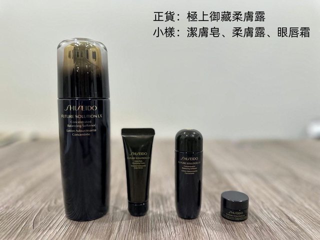 左邊大罐的柔膚露是正貨,右邊三個都是送的小樣