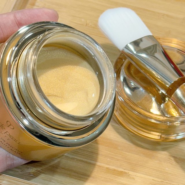 用它盒內附的刷子來上面膜,敷上臉會有金光閃閃的效果