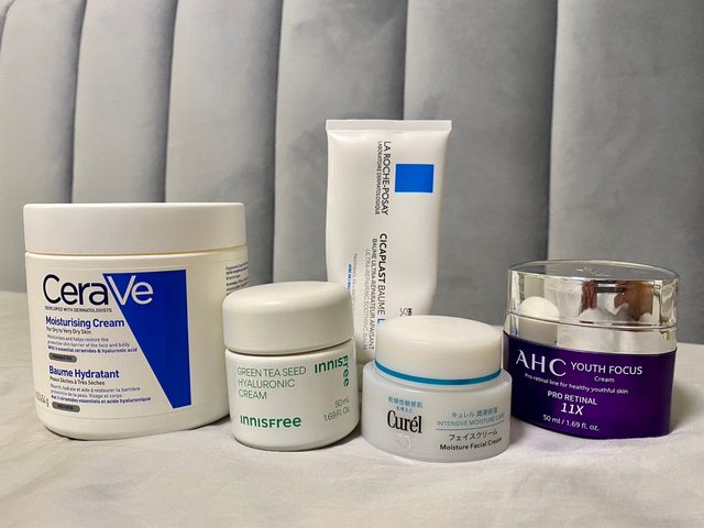乳霜大軍集合!!!身為混合肌需要保濕但也怕太油,所以挑選重點就會是清爽保濕的乳
