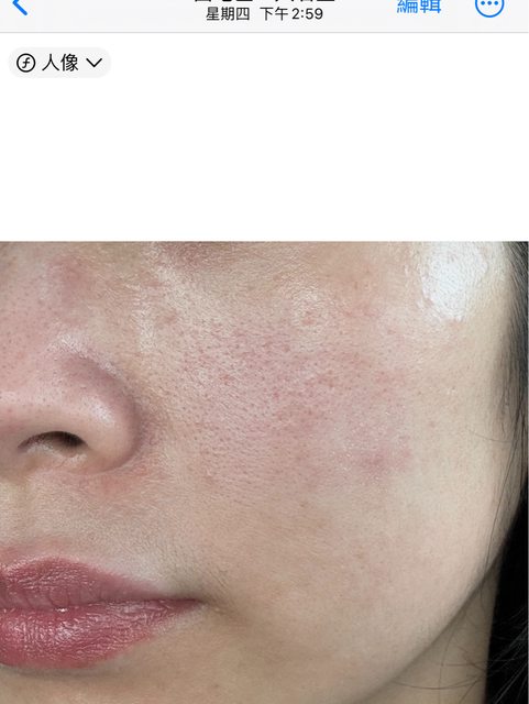 臉頰還是輕微泛紅,但是紅腫和丘疹的情況好超多,目前已經恢復大約七八成了,以這樣
