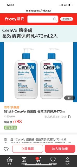 標題[情報] CeraVe 長效清爽保濕乳 473ml*2 788元