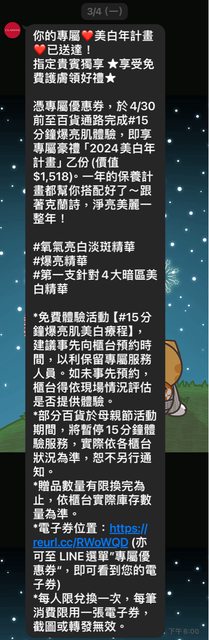 月初克蘭詩官方Line通知我,專屬我的美白年計畫已送達
