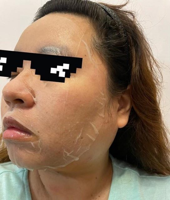 面膜內有添加修復成分,敷完後我覺得皮膚變得比較透亮,泛紅好像也有降低XDD