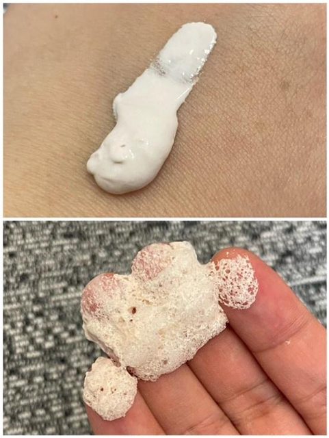 它是軟管設計,質地是柔軟的泥狀質地,擠出泥狀質地後塗在臉上即可,泥狀質地自己會波波波變成泡泡面膜,超神奇的!