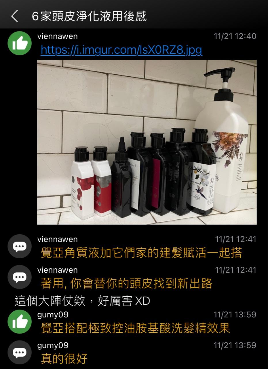 → Cary0506: 我都是它們的頭皮淨化液+洗髮精一起用沒 27.51.129.89 04/28 13:58