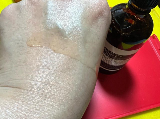 原以為它是水狀質地,但將它塗抹開來時又感覺像油(似水又似油)