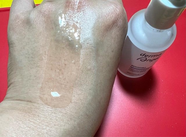 它是水狀帶點稠度的質地,很顯然是含有玻尿酸成分