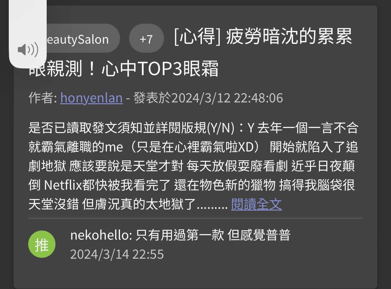 推 ivyijiro: 眼霜跟面膜真的是要嘗百草,只能說女生 27.51.80.202 05/20 18:56