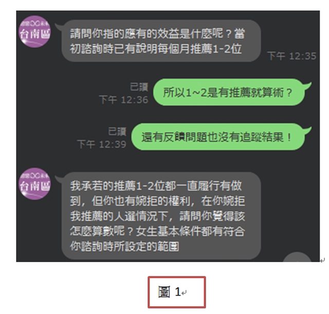我說合約真的只有一份麻煩幫我圈起來,婚友社就沒有下文了(圖23)