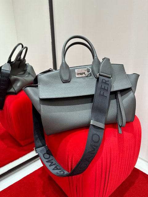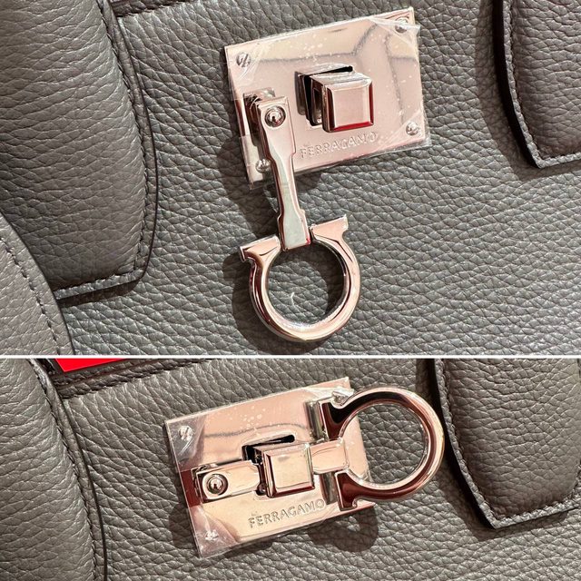 銀色鎖扣是Ferragamo標誌,很有質感,開闔方式非常創意。