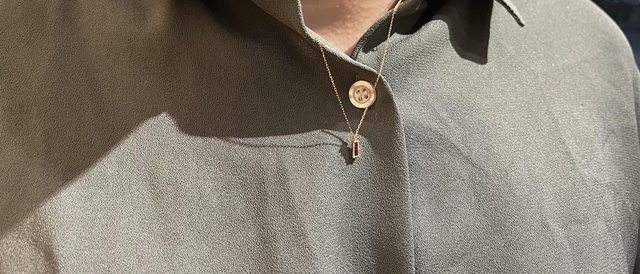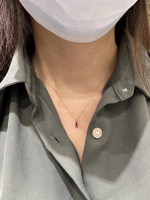 項鍊是用2顆尖階梯形切割紅寶石,很有層次感,