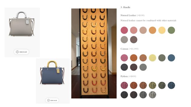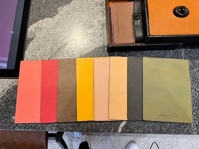 (從皮料選擇開始、把手、皮革線、五金等顏色)。