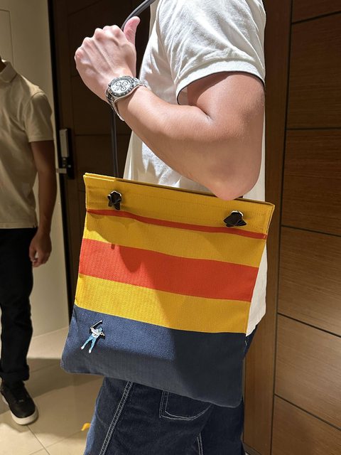 裝錢包、太陽眼鏡、反正裝各種雜物都可以,帆布材質也不用怕變形,簡單粗暴亂塞就能出