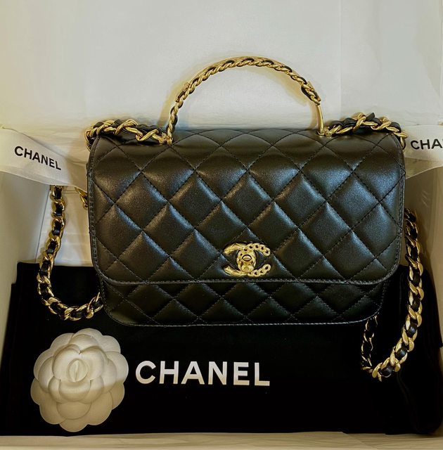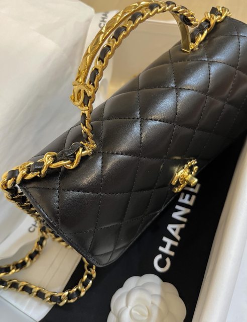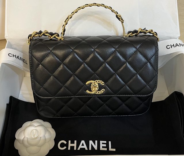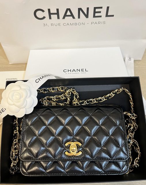 小香包一定要是黑色的,店員拿了幾個黑色讓我挑,在山茶花調節球的WOC跟黑色亮皮WOC