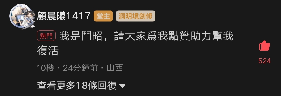 BLACKCAT0703: 我是鬥昭,我沒有死,我還差1000元就可以逃出殞仙林 12/30 12:56