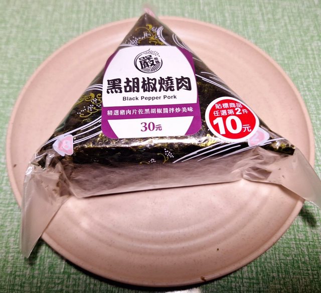 【商品名稱/價格】:黑胡椒燒肉飯糰/30元 任選兩件 第二個10元