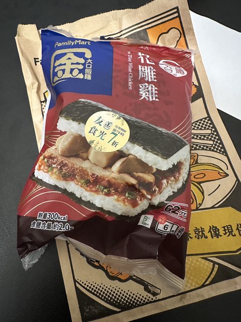 【商品名稱/價格】:全家 台酒花雕雞飯糰 /62