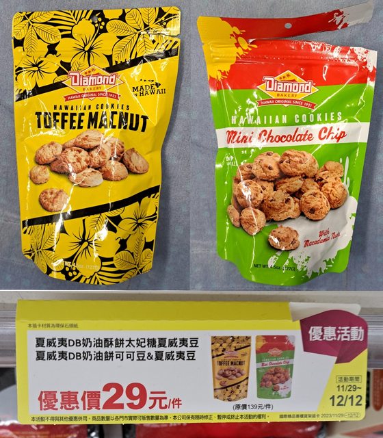 【商品名稱/價格】:夏威夷DIAMOND BAKERY酥餅可可豆&夏威夷豆風味/太妃糖夏威夷豆
