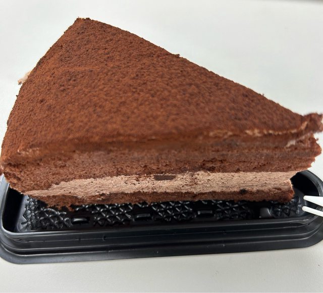 巧克力粉有點濕濕的,吃起來沒有我期待的口感,但中間奶油餡非常好吃,還能吃到小塊