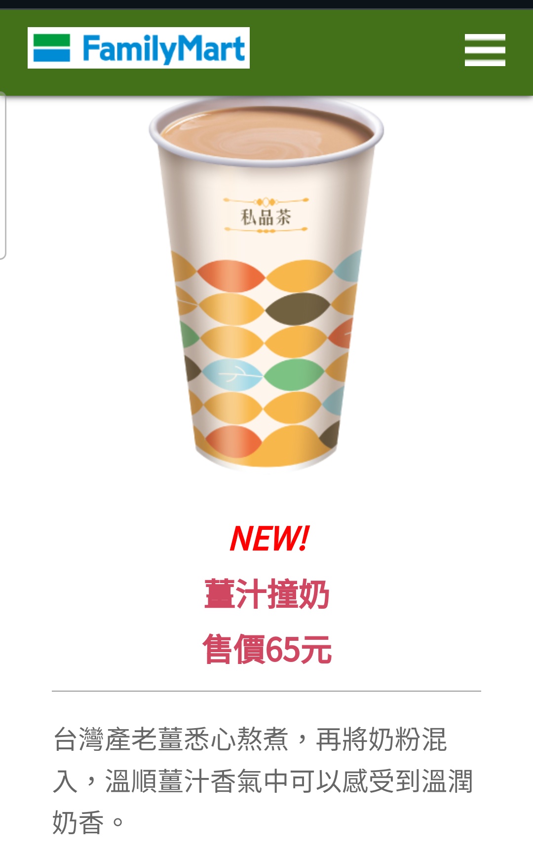 → ctcofe: 奶味、薑味、黑糖味都很淡很淡,這價格不會回購 12/22 17:24