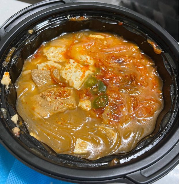 豬肉兩三片,有愛吃的冬粉跟豆腐,還有泡菜