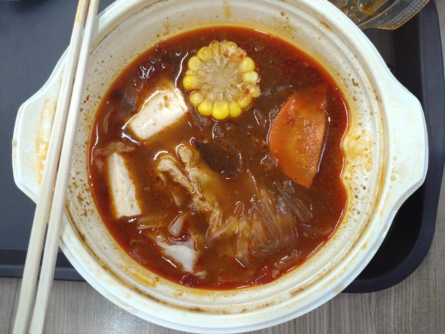 豆皮切片×1 玉米×1 紅蘿蔔×1 冷凍豆腐*2 黑木耳×2 紫米糕*2 高麗菜少許