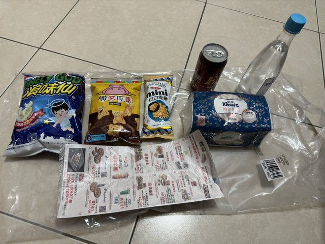 : 一包衛生紙、三包零食(還有旺仔小饅頭...)