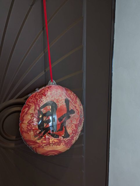 原本是想說先掛在門上,到時候去買「發」來湊成「發財」,