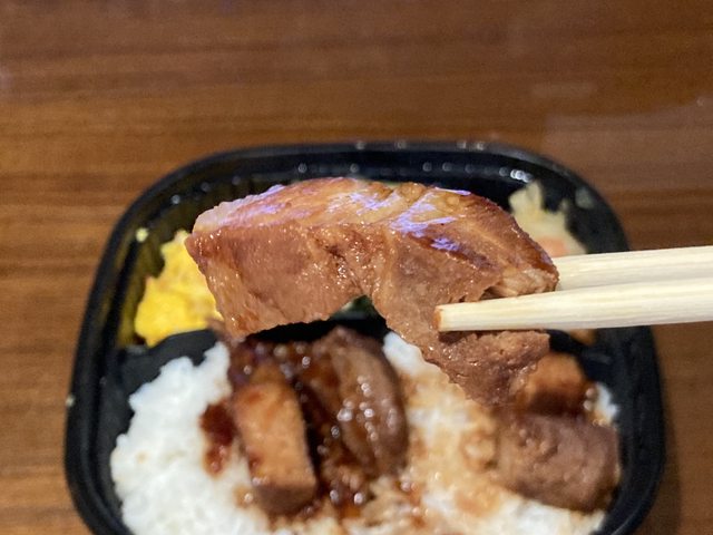 來說,肉塊還是滿厚的,白飯上的醬油很鹹很適合配飯
