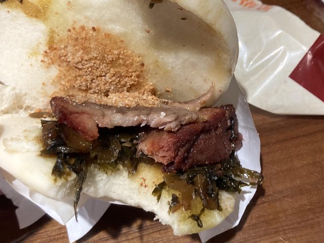 是怎麼回事呢?跟129元的便當用的是同一批豬肉叉燒薄片吧,吃刈包不就是要吃豬肉塊,給