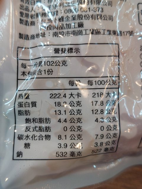 【規格/內容物/熱量】:1包/5顆/222大卡