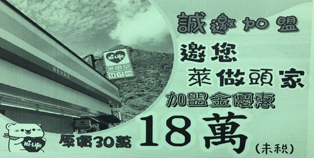 → rairobin: 加盟那些錢不如去夜市擺小吃還有剩 02/11 14:42