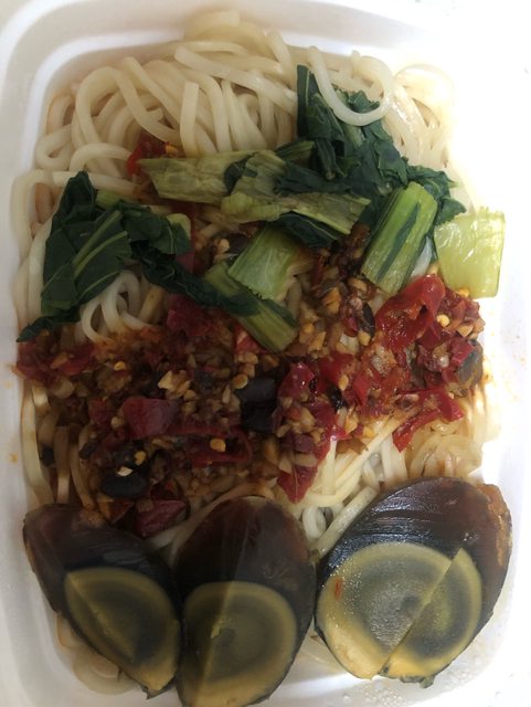 辣醬的部分其實有點過鹹,但整體的搭配上比其他市面上有看過的微波皮蛋拌麵好多了