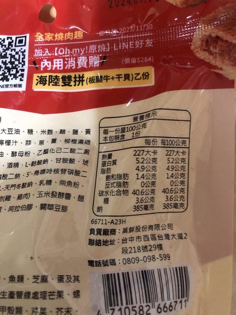 【規格/內容物/熱量】:100g/277大卡