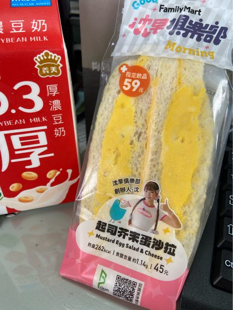 【商品名稱/價格】:沈早俱樂部-起司芥末蛋沙拉三明治/單買$45,可搭配飲品$59、$6