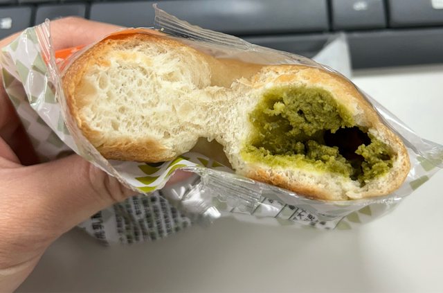 昨天本來想買巧克力貝果當早餐,結果沒看到,就想說試看看抹茶