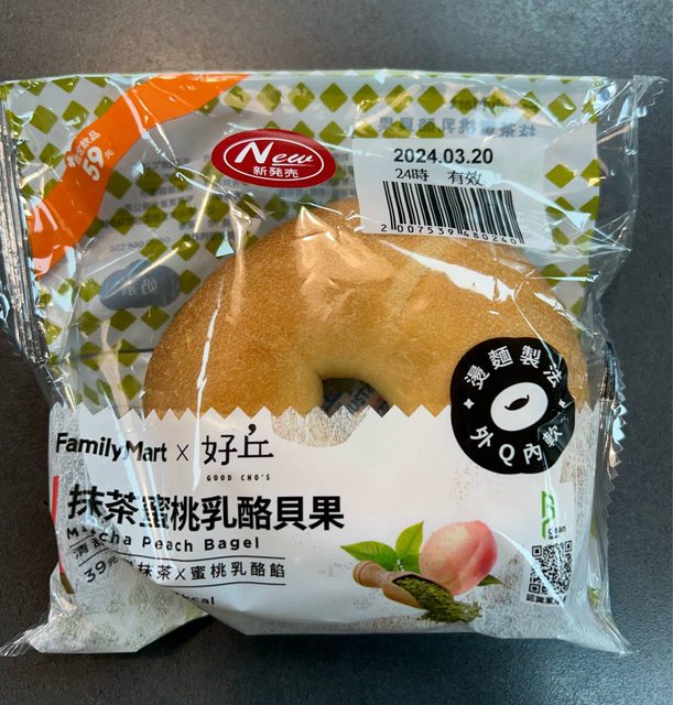【商品名稱/價格】:抹茶蜜桃乳酪貝果/39元