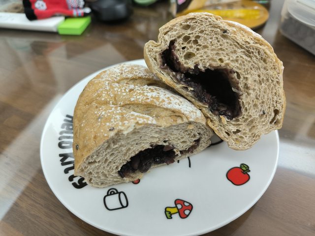心得:麵包體有芝麻等堅果,咀嚼的時候芝麻香氣也會出來,內餡好吃不甜膩,但頭尾偏
