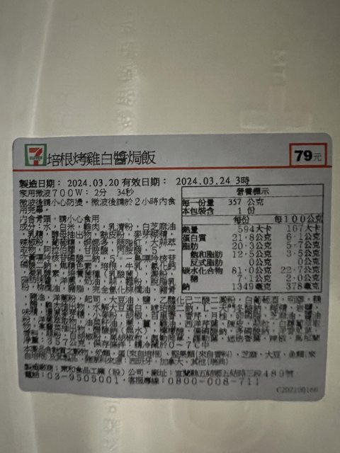 標題[商品] 7-11 培根烤雞白醬焗飯