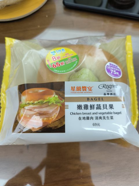 【商品名稱/價格】:嫩雞鮮蔬貝果/原價69/65折後45元