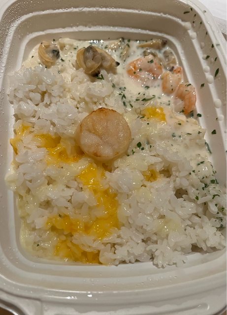 平時很少吃海鮮,架上剩下的餐盒只剩這個比較有興趣,起司也不多,猜想可能跟燉飯差