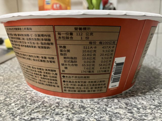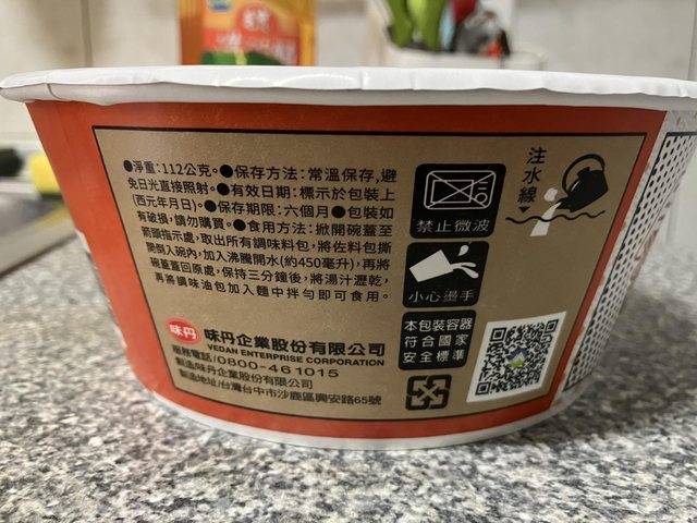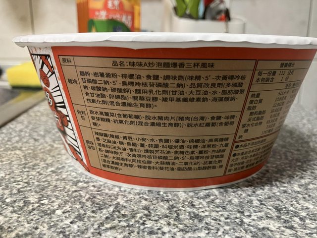 【規格/內容物/熱量】:112公克/麵餅.佐料包(含豬肉).調味油包/511大卡