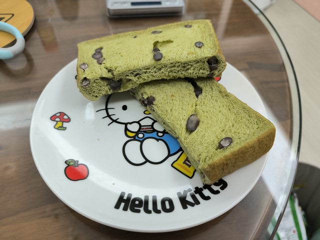 麵包體不甜,有淡淡的抹茶香,建議吃的時候多咀嚼幾口,茶香會慢慢顯現出來。