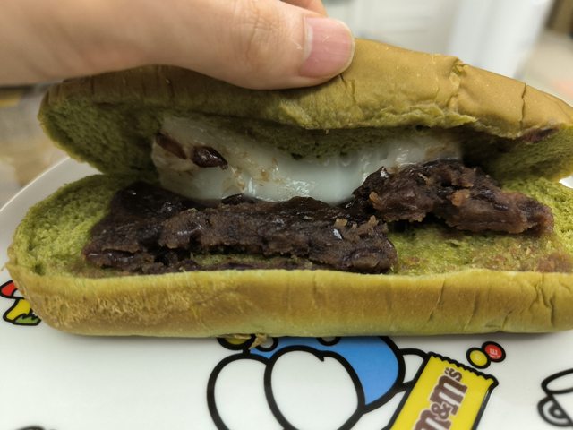 內餡充足,除了頭尾那兩口咬不到內餡外,紅豆稍微甜,但綜合了整個麵包的甜味,麻糬